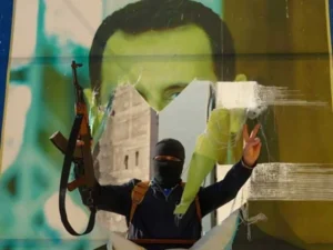 دمشق کے نواح میں شامی باغیوں نے سابق صدر حافظ الاسد کا مجسمہ گرا دیا۔ مظاہرین نے بشارالاسد کے خلاف نعرے بھی لگائے۔