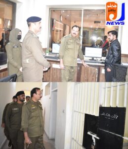 دوران وزٹ ڈی پی او جہلم کا تھانہ کی بلڈنگ،SIPs پروٹوکول،فرنٹ ڈیسک،مال خانہ تھانہ،حوالات تھانہ اور میس ہال کا بھی جائزہ لیا