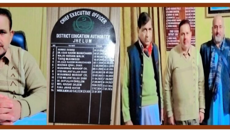 محمد سلیم شاہ سی ای او ایجوکیشن جہلم سے تحصیل پریس کلب دینہ کے صدر جرار حسین میر کی قیادت میں صحافیوں کے وفد کی ملاقات