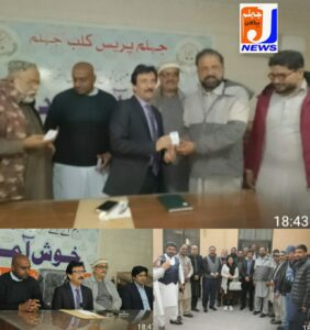 پریس کلب کے عہدیداران و ممبران میں جہلم پریس کلب کے کارڈ تقسیم کیے اور ضلع بھر میں جاری کاموں پر بریفنگ دی