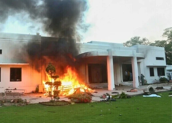 آئی ایس پی آر کے اعلامیہ کے مطابق 9 مئی 2023 کو قوم نے سیاسی طور پر بھڑکائے گئے اشتعال انگیز تشدد اور جلاؤ گھیراؤ کے افسوسناک واقعات دیکھے، 9 مئی کے پرتشدد واقعات پاکستان کی تاریخ میں ایک سیاہ باب کی حیثیت رکھتے ہیں۔