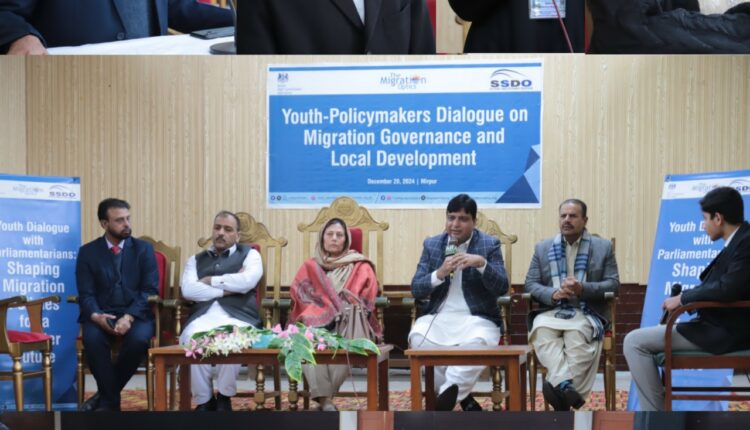 جہلم (راجہ نوبہار ) برطانوی ہائی کمیشن کے اشتراک سے سسٹین ایبل سوشل ڈیولپمنٹ آرگنائزیشن (SSDO) نے گورنمنٹ پوسٹ گریجویٹ کالج میرپور میں غیر قانونی انسانی سمگلنگ کے روک تھام کے موضوع پر یوتھ ڈائیلاگ کا انعقاد کیا۔ تقریب میں پارلیمنٹرینز اور طلباء و طالبات نے ایک پلیٹ فارم پر جمع ہو کر اپنے خیالات کا تبادلہ کیا۔ اس تقریب کا مقصد نوجوانوں کو غیر قانونی ہجرت کے سماجی و اقتصادی اثرات اور اس کے حل کے بارے میں آگاہی فراہم کرنا تھا تاکہ وہ اس مسئلے کے حل میں اپنا کردار ادا کر سکیں۔