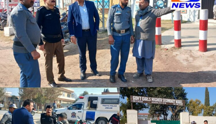 جہلم ہیڈ لائینز کی خبر پر ڈسٹرکٹ پولیس آفیسر جہلم طارق عزیز سندھو کا فوری نوٹس ،ڈی ایس پی ٹریفک طارق شفیع کا دینہ گورنمنٹ گرلز ہائیر سیکنڈری سکول سمیت منگلا روڈ کے مختلف سکولوں کا وزٹ