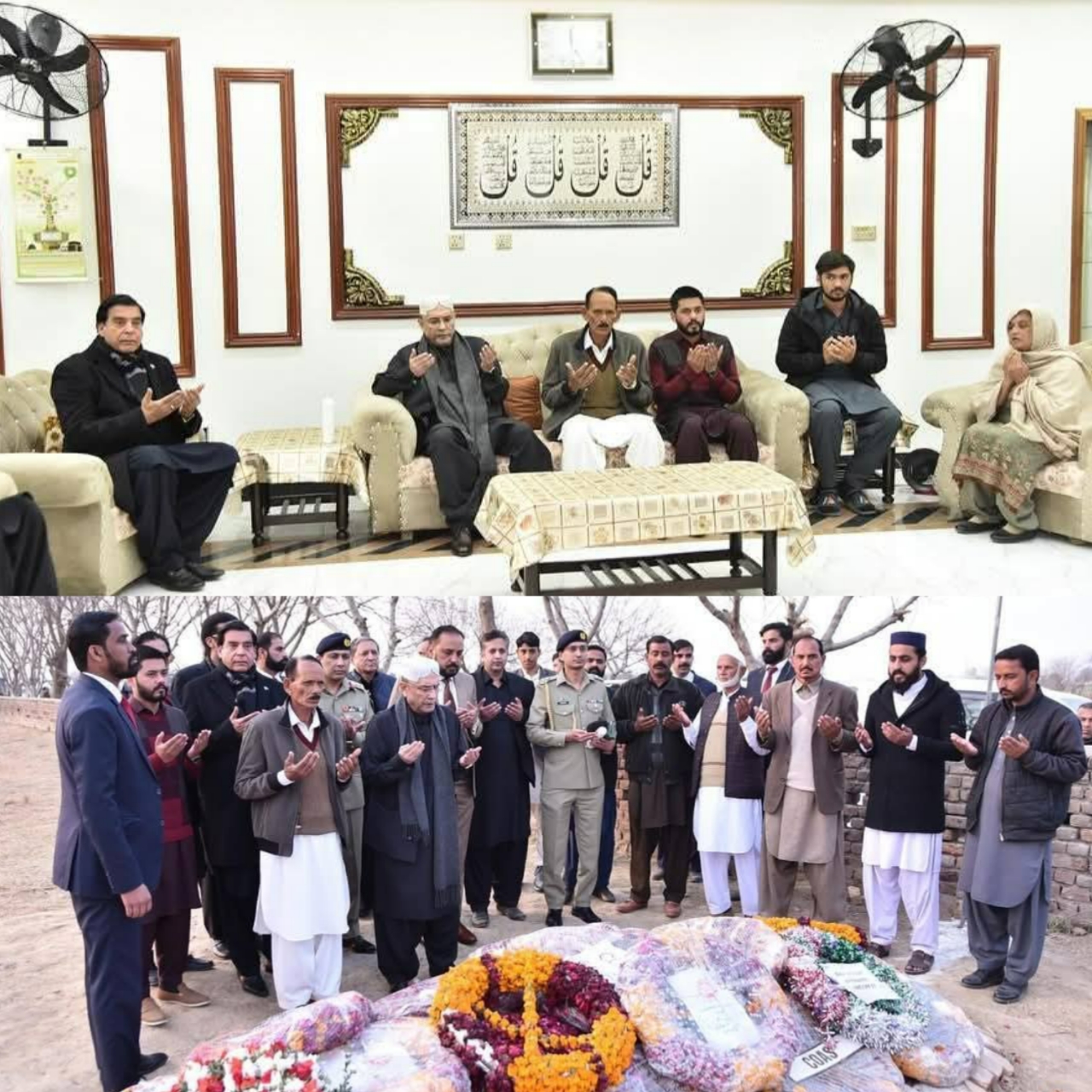 صدرپاکستان آصف علی زرداری اور سابق وزیر اعظم راجہ پرویز اشرف کی شمالی وزیرستان میں خوارجی دہشتگردوں کے خلاف بہادری سے لڑتے ہوئے شہادت کا رتبہ پانے والے میجر حمزہ اسرار کی قبر پر حاضری دی