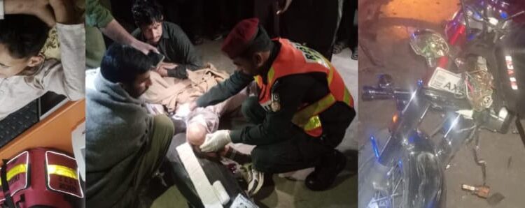 اطلاع ملتے ہی ریسکیو1122موقع پرپہنچ گٸی،زخمیوں کوہسپتال منتقل کردیا،شناخت فرحان کیانی اور حارث کیانی سکنہ پنڈگل اندازاں سے ہوٸی