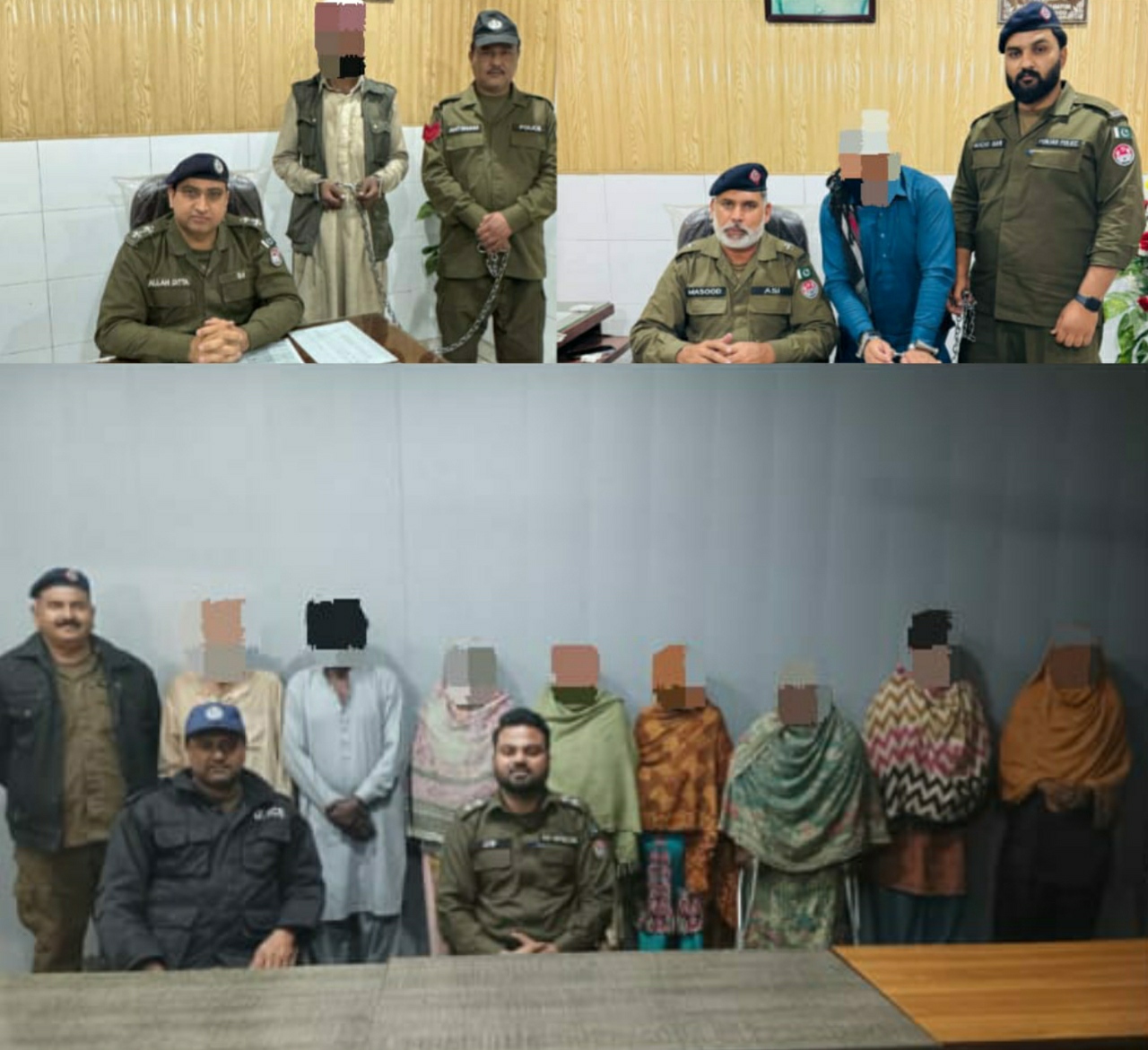 گداگر ملزمان میں شوکت علی، ملازم حسین، اللہ دتہ، سوداگر، منتظر خان، عائشہ مائی، وزیراں مائی، ثناء بی بی، ارم بی بی، رشیدہ بی بی اور حسینہ کو گرفتار کر لیا،
