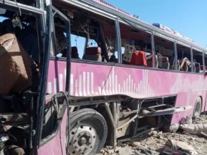ایس ایچ او ظفر بلوچ کے مطابق بس پر حملہ مبینہ طور پر خود کش لگتا ہے۔