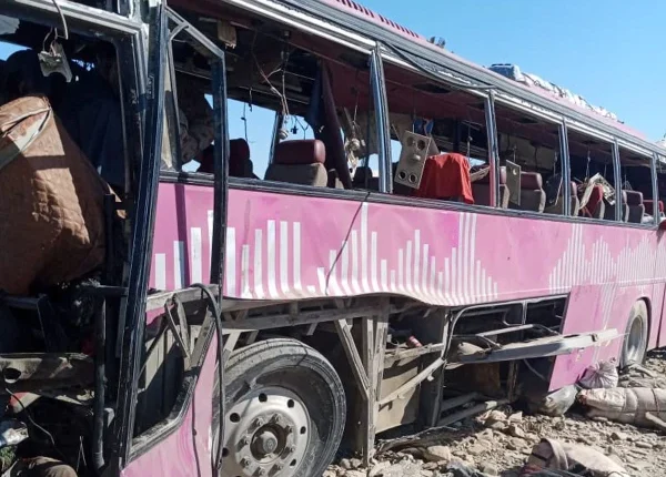 سیکیورٹی حکام کے مطابق بس نوشکی سے تفتان کی جانب جا رہی تھی کہ راستے میں دھماکا ہوگیا۔