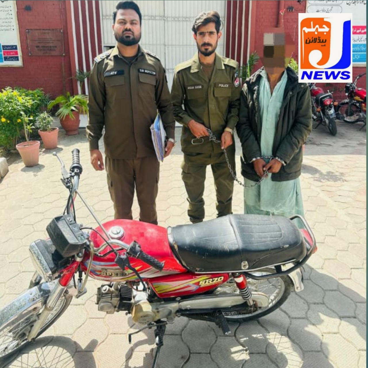 ایس ایچ او تھانہ دینہ اور ٹیم کی اہم کاروائی،موٹر سائیکل چوری کے مقدمہ میں ملوث ملزم گرفتار،چوری شدہ موٹر سائیکل برآمد