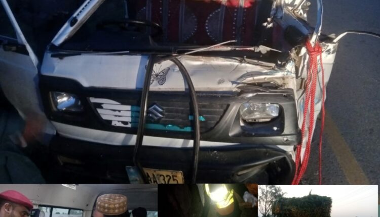 روڈ پر کھڑے چارے سے بھرے ہوئے ٹرک کو پک اپ نے پیچھے سے ہٹ کیا۔ ریسکیو ذرائع