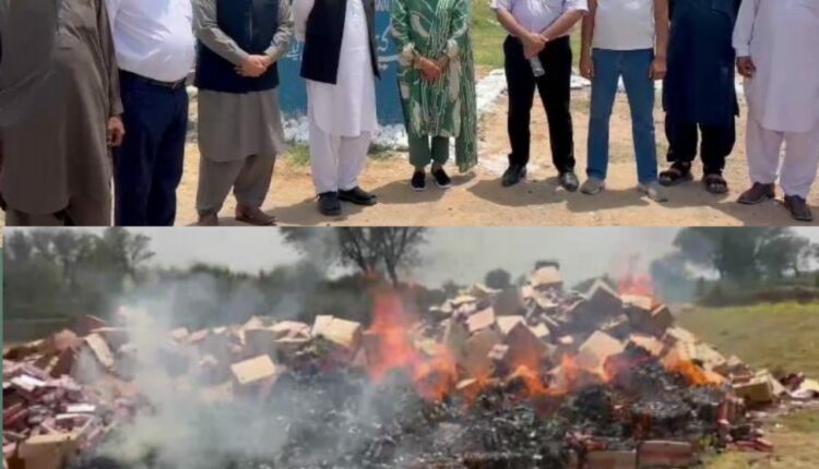 دینہ: ایف بی آر نکودر کی بڑی کارروائی، 18 کروڑ مالیت کے غیر قانونی سگریٹ تلف