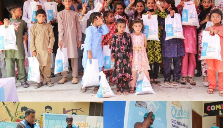 عالمی شہرت یافتہ سماجی تنظیم مسلم ہینڈز پاکستان نے عید الاضحی کے موقع پر ایریا آفس گوجرخان میں اجتماعی قربانی کا فریضہ انجام دیا جس میں چھ سو سے زائد مستحق گھرانوں میں گوشت تقسیم کیا