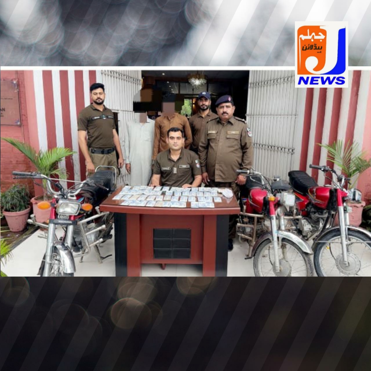 ڈی پی او جہلم طارق عزیز سندھو کی ہدایت پر ایس ایچ او تھانہ دینہ اور ٹیم کی اہم کاروائی،موٹر سائیکل چوری،ڈکیتی اور چوری کی متعدد وارداتوں میں ملوث گینگ کے 02ملزمان گرفتار