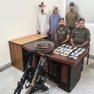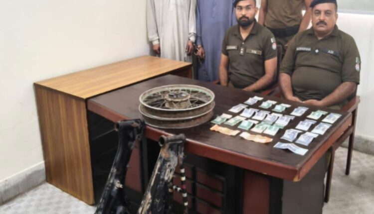 ملزمان سے نقدی 15 ہزار روپے،رکشہ فریم اور موٹر سائیکل کے اسپیئر پارٹس برآمد کر لیے گئے،