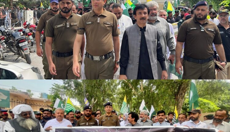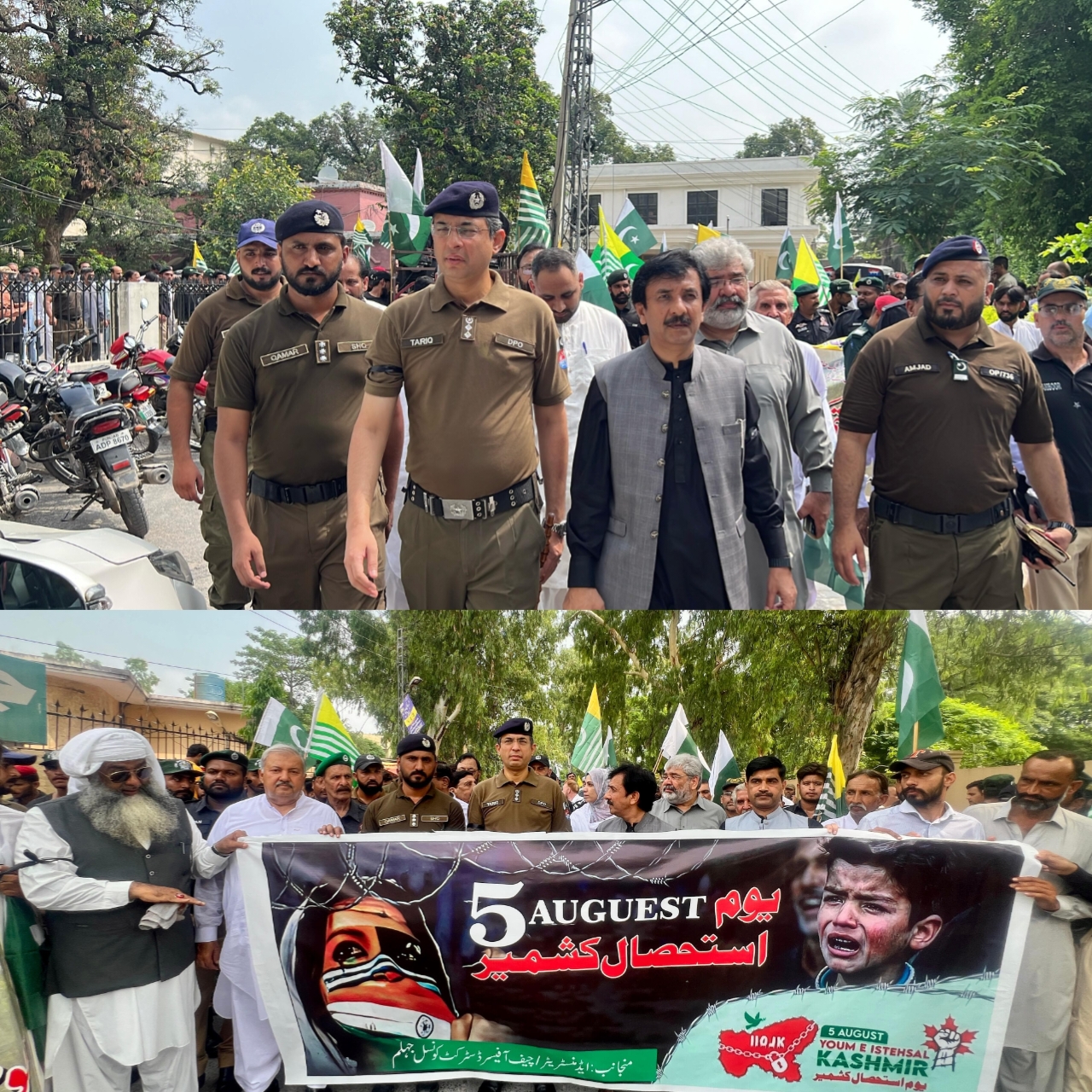 جہلم 5 اگست یوم استحصال کشمیر پر احتجاجی ریلی کا انعقاد. ریلی کی قیادت ڈپٹی کمشنر جہلم میثم عباس اور ڈی پی او جہلم طارق عزیز سندھو نے کی