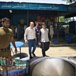 جہلم۔( اقبال خان )ناقص اشیاء خورد و نوش فروخت کرنے پر سول ہسپتال کی کنٹین سیل ، اسسٹنٹ کمشنر جہلم کے چھاپے کے دوران کھانے پینے کی ناقص اشیاء اور خراب دودھ پکڑا گیا سخت کاروائی کا حکم۔ تفصیلات کے مطابق ڈپٹی کمشنر جہلم میثم عباس کی ہدایت پر اسسٹنٹ کمشنر جہلم شمس الرحمن نے عوامی شکایات پر ڈی ایچ کیو ہسپتال میں قائم کنٹین کا دورہ کیا جہاں کھانے پینے کی اشیاء انتہائی ناقص مٹیریل سے تیار کی جا رہی تھی جبکہ چائے کے لیے استعمال ہونے والے دودھ میں مکھیاں اور دیگر حشرات پائے گئے جس پر اسسٹنٹ کمشنر جہلم نے اظہار برہمی کرتے ہوئے فوری طور پر کینٹین کو سیل کرنے اور ٹھیکیدار کے خلاف سخت قانونی کاروائی عمل میں لانے کی ہدایت کر دی اس موقع پر سول ہسپتال کے ایم ایس ڈاکٹر سہیل اور محکمہ صحت کے دیگر ذمہ داران بھی اسسٹنٹ کمشنر کے ہمراہ تھے اسسٹنٹ کمشنر شمس الرحمن نے اس موقع پر کہا کہ سول ہسپتال میں آنے والے شہریوں کی جانوں سے کھیلنے والے عناصر کو کوئی رعایت نہیں دیں گے۔ خود ساختہ قیمتوں پر ناقص اشیاء بیچنے والوں کے خلاف سخت کاروائی عمل میں لائی جائے گی۔