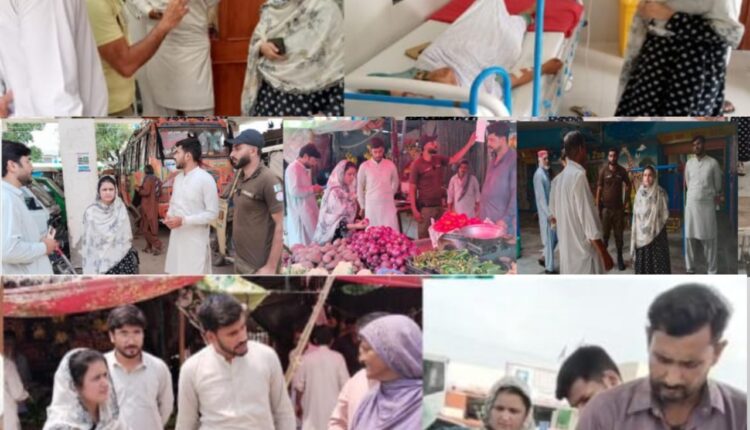آرایچ سی ہسپتال،پٹرول پمپ،میڈیکل اسٹور،بس اڈا اور دوکانوں میں چیک کیا،منافع خوروں اور پٹرول کے پیمانے کم ہونے پر جرمانے کٸے،
