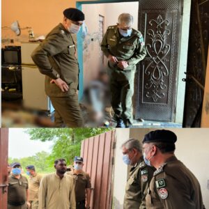 جہلم ( اقبال خان )آر پی او راولپنڈی بابر سرفراز الپا کا ڈی پی او جہلم طارق عزیز سندھو کے ہمراہ تھانہ کالا گجراں کے علاقے کوٹھہ پرانا میں 04 شہریوں کی قتل کے موقع کا وزٹ،