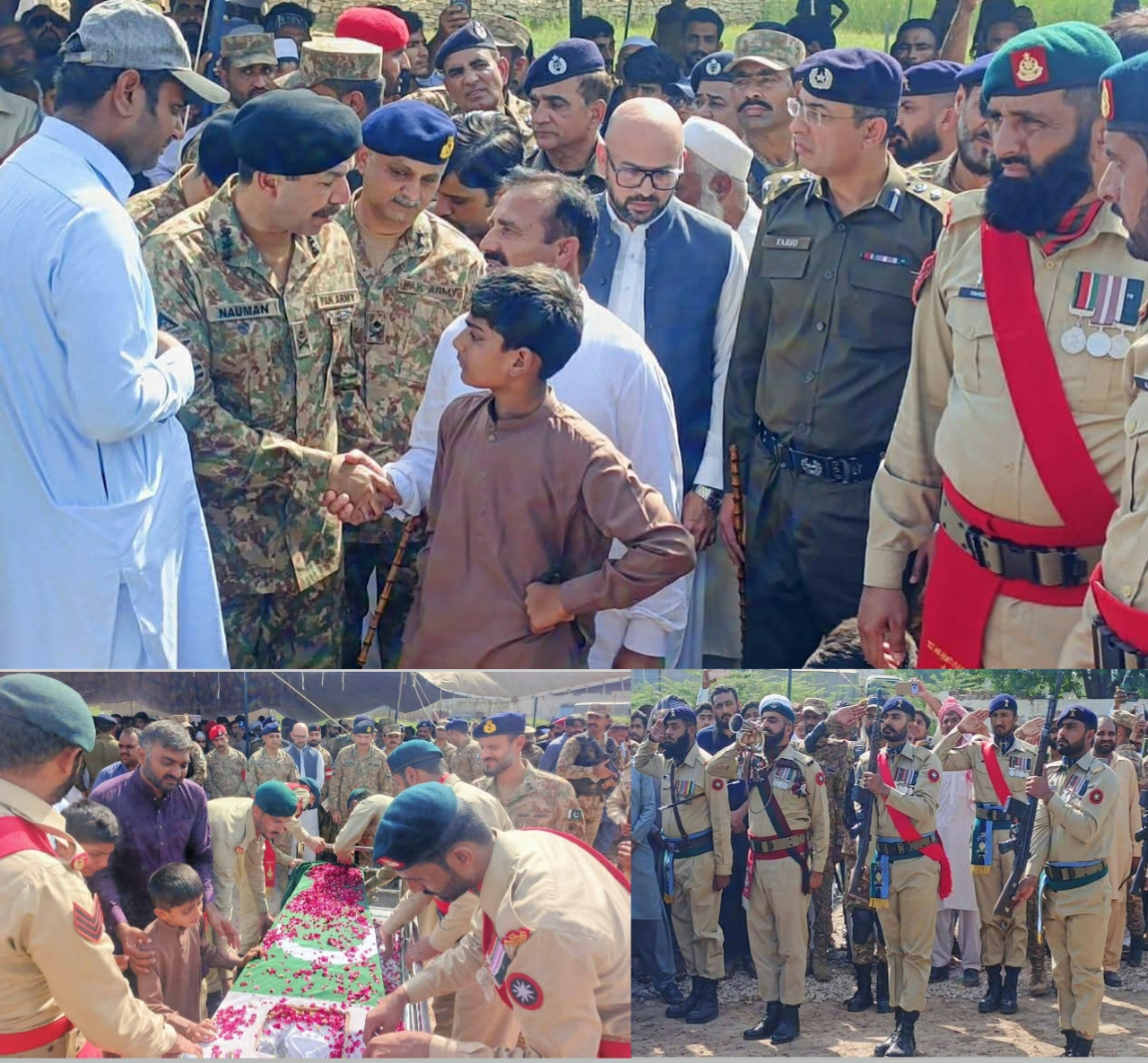 ڈپٹی کمشنر جہلم کی پنڈ دادن خان میں شہید سپاہی محمد طیب کے جنازہ میں شرکت، جرات و بہادری کو خراج تحسین ، تفصیلات کے مطابق پاک فوج کے سپاہی محمد طیب جو پاک افغان سرحد پر فائرنگ کے تبادلے میں قوم کی خاطر جان کا نذرانہ پیش کر گئے، انہیں آبائی علاقے میں پورے فوجی اعزاز کے ساتھ سپردِ خاک کر دیا گیا۔ شہید محمد طیب کا تعلق ضلع جہلم کی تحصیل پنڈ دادن خان کے علاقے جھگیاں سے تھا۔ان کی نمازِ جنازہ میں ڈپٹی کمشنر جہلم میر رضا اوزگن نے خصوصی طور پر شرکت کی۔ ڈپٹی کمشنر نے شہید کے درجات کی بلندی اور غمزدہ خاندان کے لیے صبر جمیل کی دعا کی۔ انہوں نے اس عزم کا اعادہ کیا کہ پوری قوم پاک فوج کے ساتھ کھڑی ہے اور وطن کے دفاع میں دی گئی ہر قربانی کو ہمیشہ یاد رکھا جائے گا۔