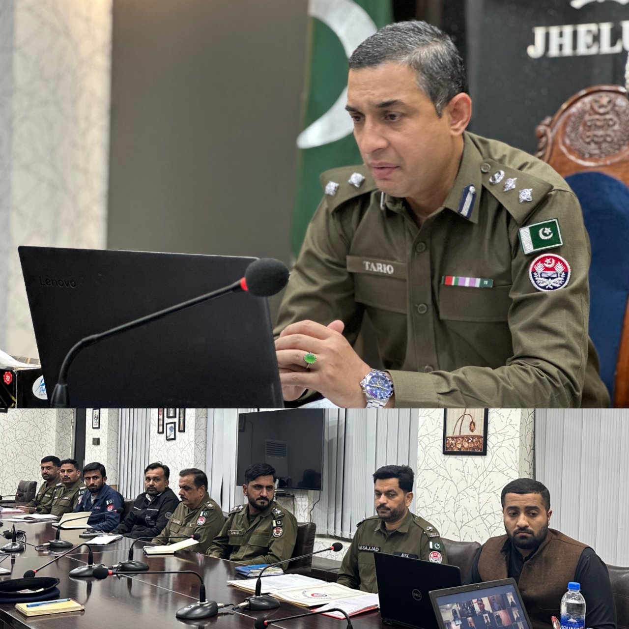 جہلم ( اقبال خان )ڈسٹرکٹ پولیس آفیسر جہلم طارق عزیز سندھو کی زیرِ صدارت ڈی پی او آفس جہلم میں موجودہ ملکی صورتحال کے پیش نظر ویڈیو لنک میٹنگ کا انعقاد
