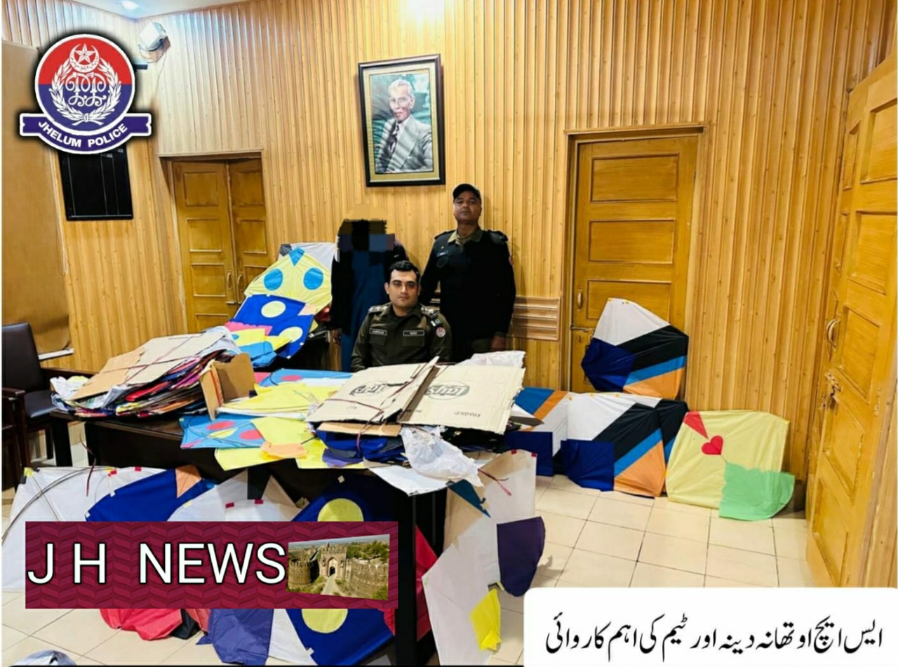 تھانہ دینہ پولیس نے کاروائی کرتے ہوئے ملزم کو گرفتار کر لیا،حکومت پنجاب کی طرف سے پتنگوں اور ڈوریں قبضہ میں رکھنے اور فروخت کرنے پر پابندی عائد کی گئی ہے ملزم پبلک ٹرانسپورٹ کے ذریعہ راولپنڈی سے جہلم پتنگیں فروخت کرنے کے لیے کے کر آرہا تھا جس کو فوری کاروائی کرتے ہوئے گرفتار کر لیا گیا،ملزم سے 150 عدد پتنگیں برآمد کر لی گئیں،