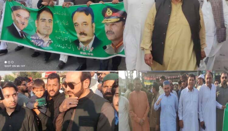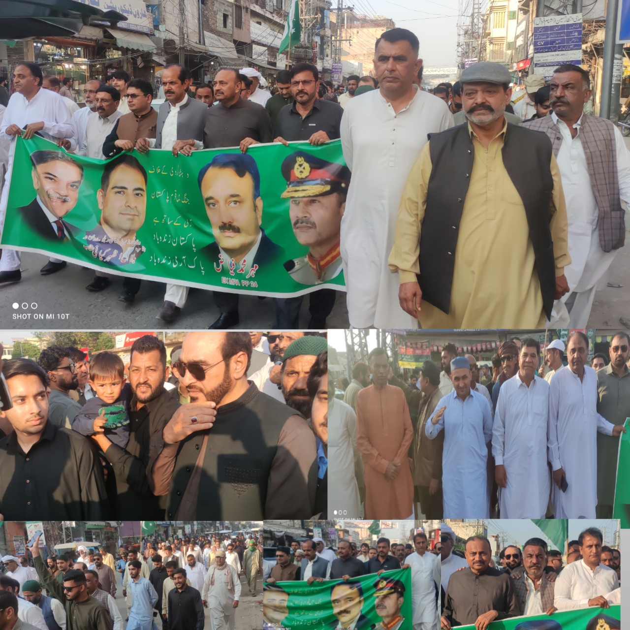 وزیر مملکت بلال اظہر کیانی جانب سے پاک فوج کے ساتھ اظہار یکجیتی ،ریلی کا انعقاد کیا گیا جس کی قیادت مہر محمد فیاض سابق ایم پی اےو راجہ علی کوارڈینٹر پی پی 24 راجہ نقاش کوآرڈینیٹر پی پی 25نے کی