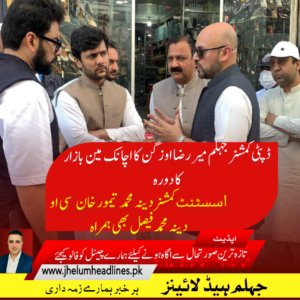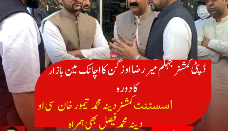 ڈپٹی کمشنر جہلم، میئر رضا اوزگن، نے آج سہہ پہر اچانک مین بازار دینہ کا دورہ کیا۔ ان کے ہمراہ اسسٹنٹ کمشنر دینہ محمد تیمور خان، اور سی او دینہ محمد فیصل بھی ہمراہ