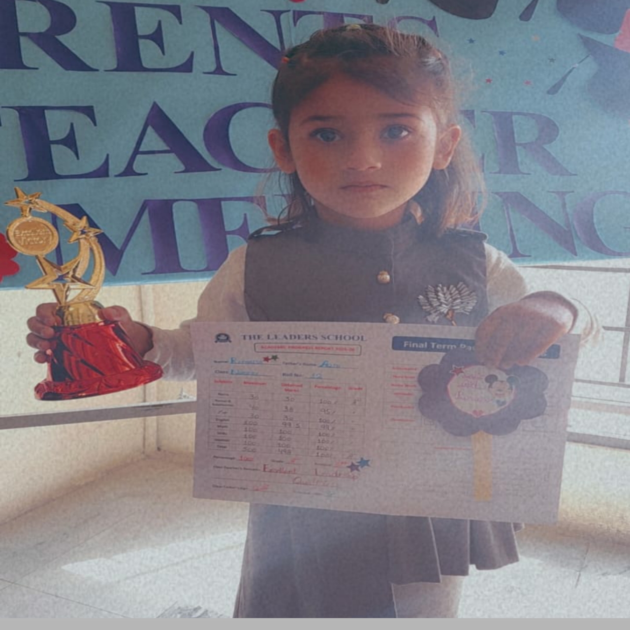 تفیلات کے مطابق دی لیڈر سکول کی ننھی طالبہ رومیسہ فاطمہ نے سالانہ امتحانات میں نرسری کلاس میں پہلی پوزیشن لے کر والدین کو انتہائ خوشی سے مخمور کیا اس کم عمری میں ایسی غیر معمولی کارکردگی پر اہلِ خانہ اور عزیز و اقارب کی جانب سے خوشی کا اظہار کیا جا رہا ہے، جبکہ اساتذہ نے بھی رومیسہ فاطمہ کو دیگر بچوں کے لیے ایک روشن مثال قرار دیا۔