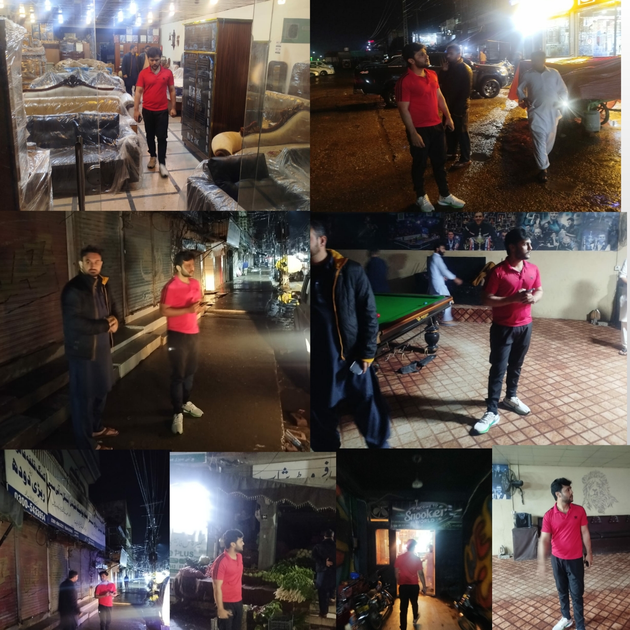 اسسٹنٹ کمشنر دینہ محمد تیمور خان نے رات آٹھ بجے جی ٹی روڈ، ریلوے روڈ اور منگلا روڈ کا دورہ کیا اور وہاں کھلی ہوئی دکانوں کو سخت وارننگ