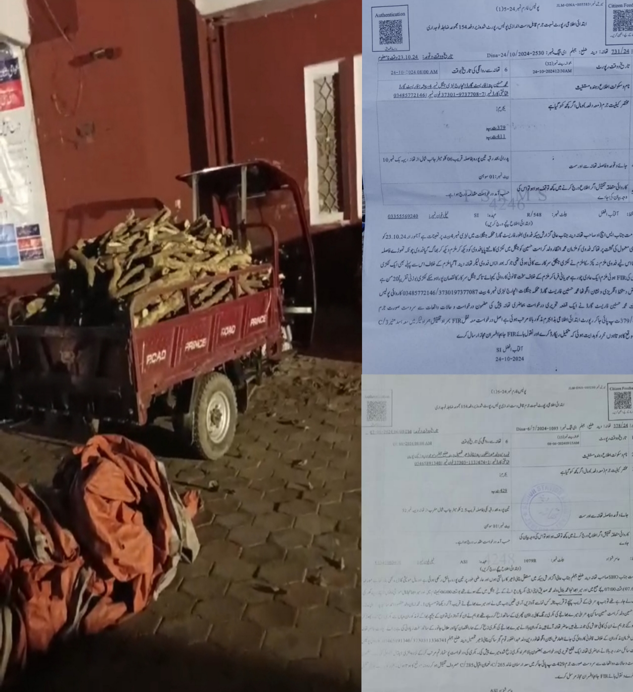 دینہ ( تحصیل رپورٹر )محکمہ جنگلات لہڑی گارڈ کی کاروائی ملزم لکڑیاں چوری کرتے فرار ۔رکشہ لوڈر بمعہ لکڑیاں تھانہ دینہ میں بند ،ملزم فرار ہونے میں کامیاب ۔عادی مجرم اس سے قبل بکریاں چوری کرنے کا مقدمہ بھی درج ،گرفتاری عمل میں نہ آ سکی ،تفصیلات کے مطابق گزشتہ روز دوران ڈیوٹی محکمہ جنگلات کا گارڈ محمد حسنین دوران ڈیوٹی حدود جنگل تین پورہ دوران ڈیوٹی شک گزرا کہ کوئی جنگل سے لکڑیاں کاٹ کر چوری کر رہا ہے جب موقعہ پر پہنچا تو ملزم محمد انتظار ولد کرامت حسین لکڑیاں چھوڑ کر فرار ہو گیا ۔لوڈر رکشہ بمعہ لکڑیاں تحویل میں لیکر بحوالہ پولیس کی گئی جس کا وزن 20من کے قریب تھا ۔ملزم عادی مجرم ہے اور اس سے قبل بھی بکری چوری کے مقدمہ ہے ۔ملزم تا حال گرفتار نہ ہو سکا ۔میڈیا نمائیندگان نے جب فاریسٹ گارڈ سے موقف جاننے کے لیے رابطہ کیا تو موصوف اس بات کا جواب نہ دے سکے کہ لوڈر رکشہ تھانہ سے کیسے نکلا جب کہ ملزم اب تک فرار ہے ۔عوامی حلقوں نے ڈسٹرکٹ پولیس آفیسر جہلم سے مطالبہ کیا کہ ملزم بکریوں کی چوری میں بھی ملوثہے اور یہ باعث پریشانی ہے کہ ملزم لکڑی چوری کے مقدمہ میں اب تک گرفتار نہ ہو سکا ۔