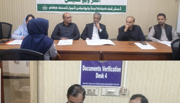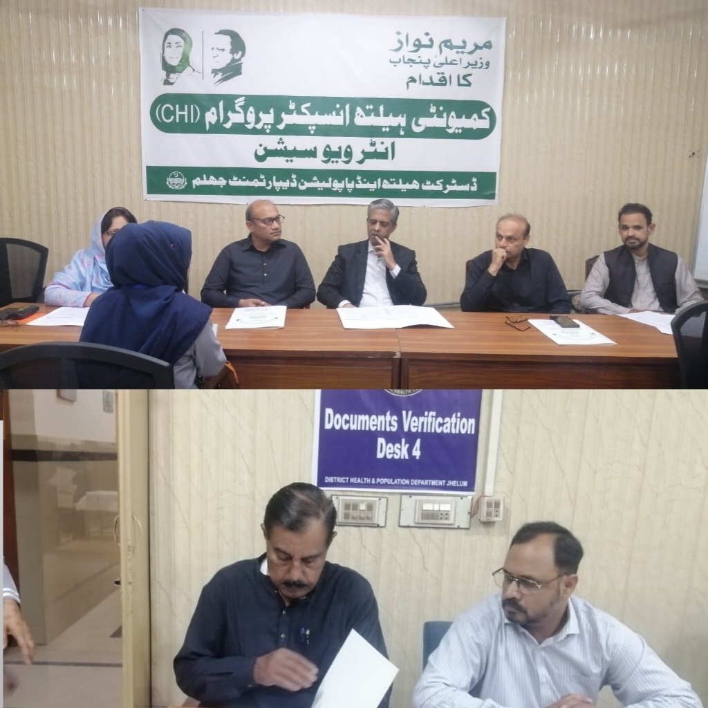 ڈسٹرکٹ ہیلتھ اتھارٹی ضلع جہلم کی جانب سے ڈی ایچ ڈی سی ہال میں کمیونٹی ہیلتھ انسپکٹر کی تعیناتی کے حوالے سے انٹرویو کی تقریب کا انعقاد