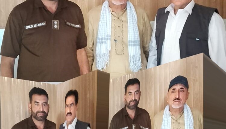 پریس کلب دینہ کے سینئر صحافیوں فنانس سیکرٹری سید جواد حسین نقوی اور ممبر پریس کلب محمد الیاس کھوکھر کی غازی غلام مجتبی انچارج چوکی سٹی دینہ سے ملاقات