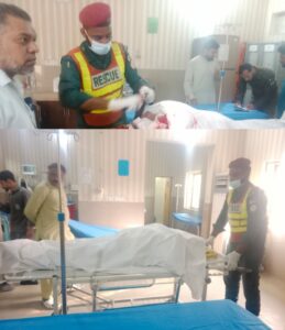 نوگراں پل نزد گرڈ اسٹیشن کے قریب تیز رفتار گاڑی (وگو ڈالہ) کی موٹرسائیکل کو ٹکر۔ ریسکیو زرائع